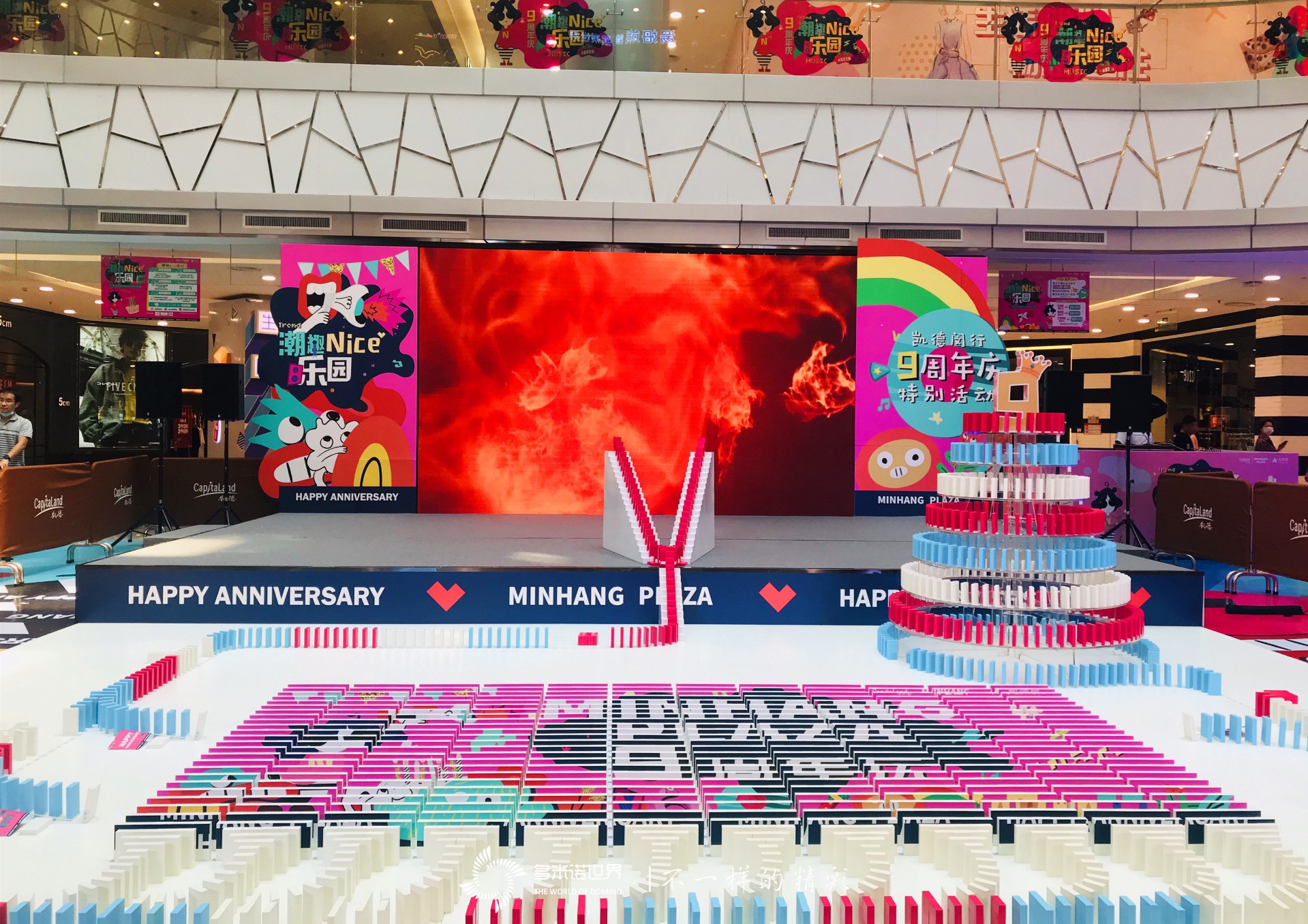 為期一個(gè)月的店慶活動(dòng)在12點(diǎn)正式開啟,一枚枚骨牌承載著對(duì)凱德龍之夢(mèng)的祝福順利前行著,當(dāng)9周年的燈箱亮起時(shí),全場(chǎng)歡呼,這是屬于凱德龍之夢(mèng)的高光時(shí)刻。