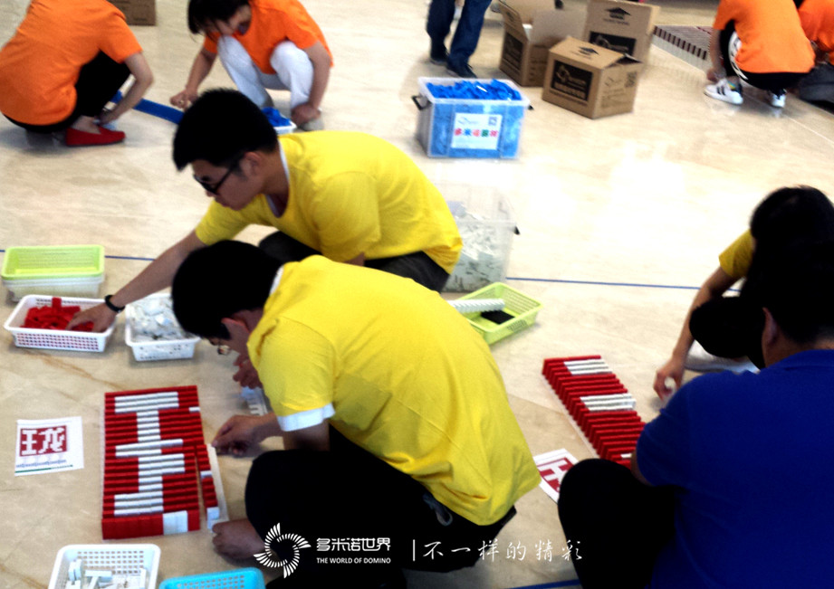 來自兩個(gè)機(jī)構(gòu)的45名青年員工,組成了4支隊(duì)伍,經(jīng)過王磊老師的專業(yè)培訓(xùn),有序進(jìn)入場地,在多米諾世界教練團(tuán)隊(duì)的指導(dǎo)下,共同完成骨牌碼放任務(wù)。