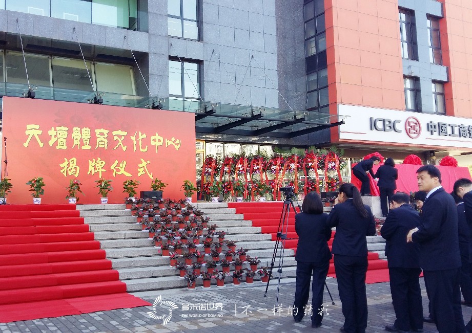 2017年3月31日,多米諾世界團隊辦公所在地正式更名為“天壇體育文化中心”,中關(guān)村科技園及東城區(qū)的相關(guān)領(lǐng)導(dǎo)參與了中心的揭牌儀式,并到中心的特色文化體育單位進行參觀。多米諾世界團隊在辦公室搭建了一個精巧、簡潔的多米諾歡迎儀式,迎接來賓。