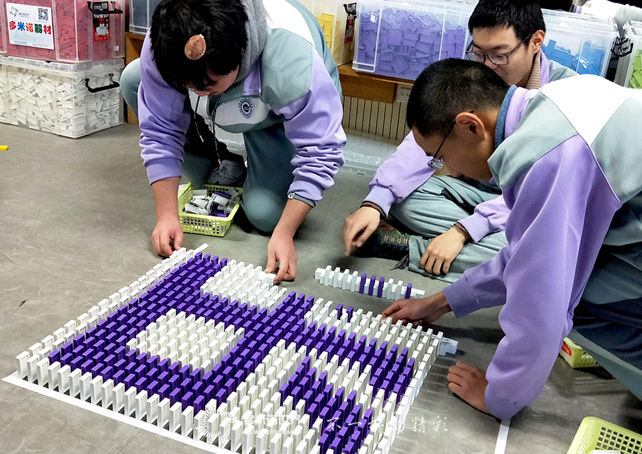 多米諾世界的老師,把同學(xué)們的創(chuàng)意構(gòu)想,設(shè)計(jì)成多米諾骨牌可以呈現(xiàn)的方案,并和同學(xué)們一起規(guī)劃場地,指導(dǎo)同學(xué)們完成骨牌碼放。