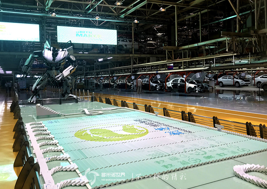本次世界環(huán)境日一汽-大眾的核心活動(dòng)是推出《一汽-大眾環(huán)保體系視覺識(shí)別系統(tǒng)》,活動(dòng)主辦方特別邀請北京的多米諾世界團(tuán)隊(duì)親臨長春,在轎車二廠寶來總裝車間,用7500枚印有環(huán)保體系視覺識(shí)別系統(tǒng)環(huán)保標(biāo)識(shí)的骨牌碼放巨幅多米諾陣列。當(dāng)與會(huì)領(lǐng)導(dǎo)共同啟動(dòng)多米諾骨牌,呈現(xiàn)出《一汽-大眾環(huán)保體系視覺識(shí)別系統(tǒng)》主標(biāo)識(shí)“創(chuàng)?享 綠色未來”,主題畫面的完美呈現(xiàn)標(biāo)志著《一汽-大眾環(huán)保體系視覺識(shí)別系統(tǒng)》的正式發(fā)布,也體現(xiàn)了一汽-大眾依然堅(jiān)持走可持續(xù)發(fā)展之路,在持續(xù)向消費(fèi)者提供質(zhì)量可靠的產(chǎn)品的同時(shí),堅(jiān)持環(huán)保和綠色理念,創(chuàng)建節(jié)能環(huán)保工廠的堅(jiān)定決心。