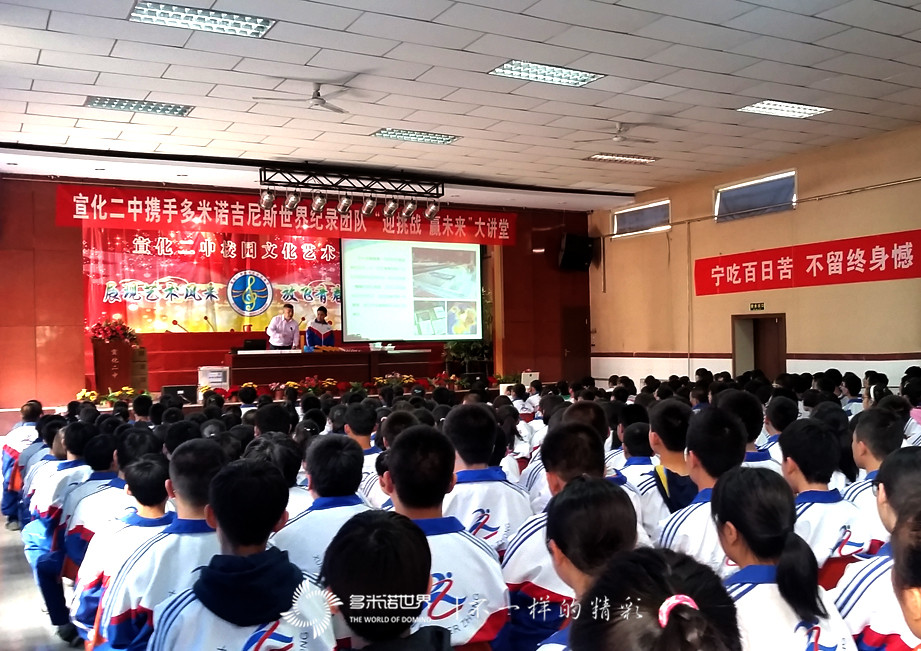 2016年4月15日,多米諾世界的“迎挑戰(zhàn)、贏未來”大講堂在宣化二中開講。