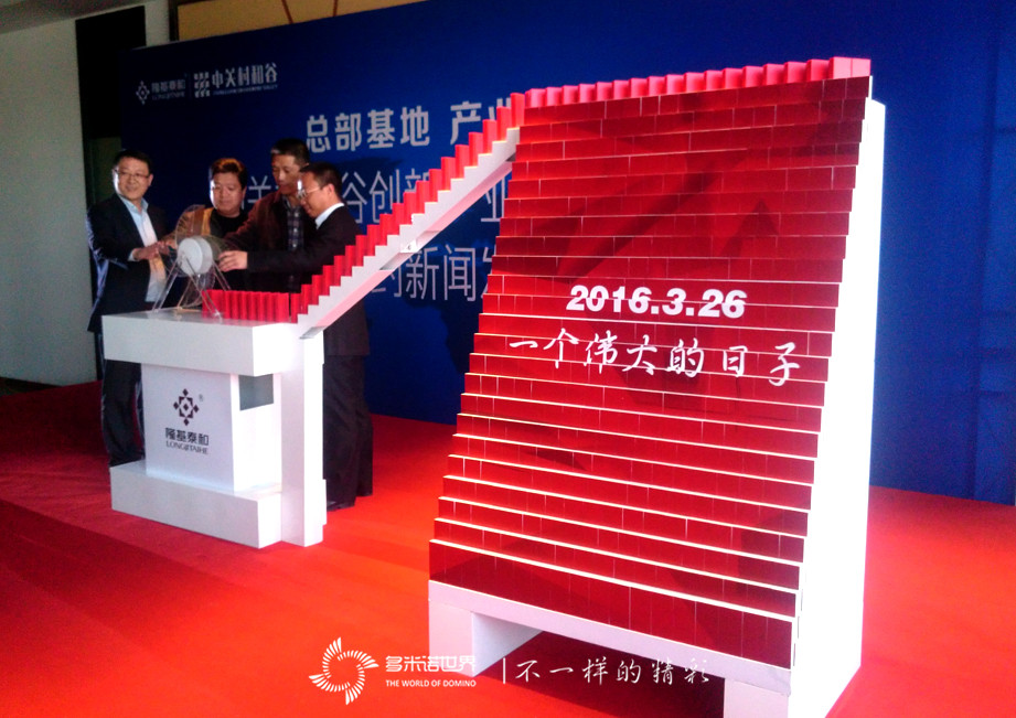 發(fā)布會最激動人心的時刻,隆基泰和地產(chǎn)公司涿州區(qū)域總經(jīng)理曹文倫,宣布涿州中關(guān)村和谷創(chuàng)新產(chǎn)業(yè)園全球招商啟動儀式開始,各位領(lǐng)導(dǎo)共同登臺,為中關(guān)村和谷全球招商儀式啟幕,隨著風(fēng)車的轉(zhuǎn)運,多米諾骨牌順序前行,在一片掌聲中,全球招商儀式正式啟幕。